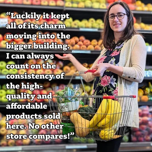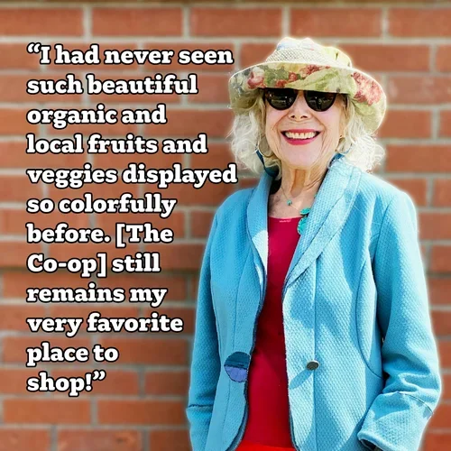 “The Co-op has been a longtime favorite of my family. My husband and I became members when it was in the old building across the parking lot. The store was small and cozy back then and luckily it kept all of its charm moving into the bigger building. I can always count on the consistency of the high-quality and affordable products sold here. No other store compares! Many times, I’ve researched something online only to happily find that the Co-op has it. To say that the staff are friendly and attentive is an understatement. Whether discussing vitamins, produce, art or UFOs, they are always helpful. I work for The Non-GMO Project and am grateful to have a local Co-op market that does so much for the community. I recommend it to everyone I know!”