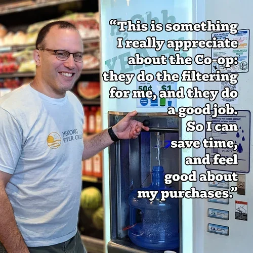 “I believe that one important way we can make the world a better place is by carefully deciding what to buy and what not to buy, and where to buy it. I want to carefully screen my purchases, according to my values, such as organic, natural, fair trade, local, etc. But who has time to research and vet every brand/company?! This is something I really appreciate about the Co-op: they do the filtering for me, and they do a good job. So I can save time, and feel good about my purchases. That is why I've been a Co-op owner/shopper for 16 years, and will be for another 16! Thank you so much!”