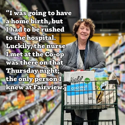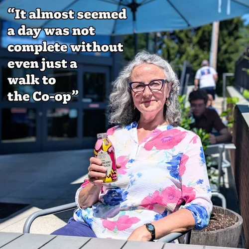 "Ten years ago when I moved from the "boonies" to the "big city" of GB, one of the biggest thrills was to actually walk 10 minutes to the Co-op (instead of drive 25 minutes). I found myself shopping and eating there very often as I felt as though I was now in a real community. It was a joy to get to know the various employees as I was there on a very regular basis. It almost seemed a day was not complete without even just a walk to the Co-op, even when I didn't always buy something, I just had to go check on "my community". Having been a member since the Rosseter St. days, it's been a thrill to see all the stages of growth the Co-op has gone through."