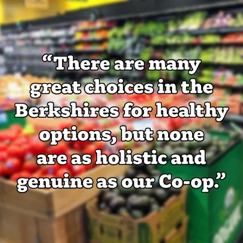 "I have preferred quality, sustainable, and healthy food most of my adult life - When I first started visiting the Berkshires, I was so excited to find the Co-op on Rosseter Street - I have always felt the Co-op was more than just a healthy market. I later became a Board member so I could actively contribute to the mission. There are many great choices in the Berkshires for healthy options, but none are as holistic and genuine as our Co-op."